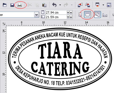 Menggunakan fasilitas Print, disini kita sudah tidak perlu menggunakan object kotak sebagai background maupun lensa, hanya object desain kita saja, caranya langsung saja klik gambar print atau tekan Ctrl+P di keyboard,